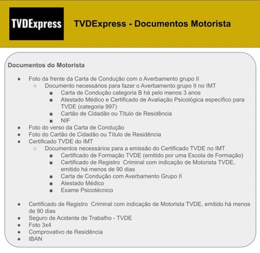 Enviar todos os documentos, informando o seu NIF, por email, para contato@tvdexpress.com ou por Whatsapp para +351 960 460 079